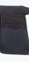 Superb quality Indigo-dyed deer skin. 7-line silk braid decoration. |